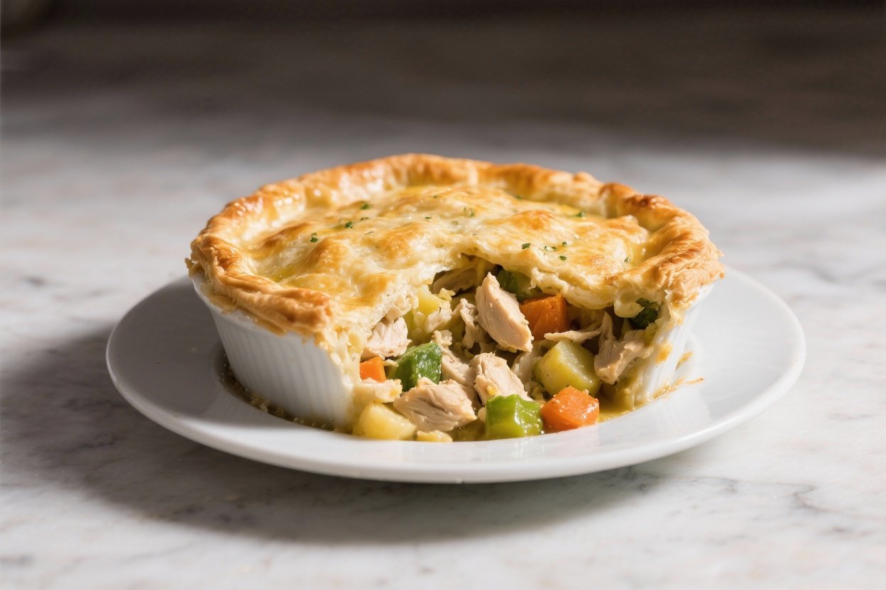 The creamy sauce is made with a simple roux, so you control the salt and fat, especially if you use low-sodium broth and milk instead of heavy cream. You’re also getting a balanced meal in one pan, which makes portioning and reheating easy. For a lighter version, use more vegetables, swap in olive oil for part of the butter, and top with a thinner layer of pastry.