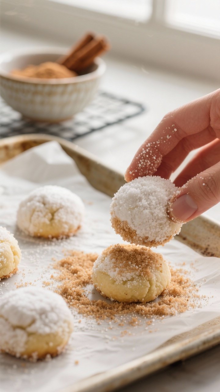 Rolling the warm cookies in cinnamon sugar twice gives them that signature snowball look with a fragrant, cozy finish.